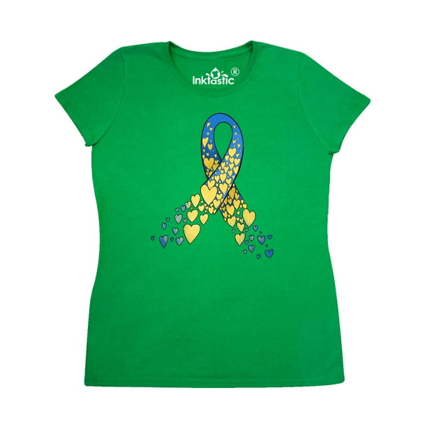 Inktastic Down Syndrome Awareness Blue And Yellow Hearts Ribbon Women S T Shirt Walmart Com Walmart Com
