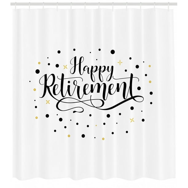 Retirement Party Shower Curtain Curlicue Style Hand Written Saying Happy Retirement Fabric Bathroom Set With Hooks 69w X 70l Inches Black White And Earth Yellow By Ambesonne Walmart Com Walmart Com