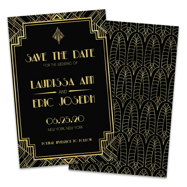 Personalized Gold And Black Art Deco Save The Date Announcement Walmart Com Walmart Com