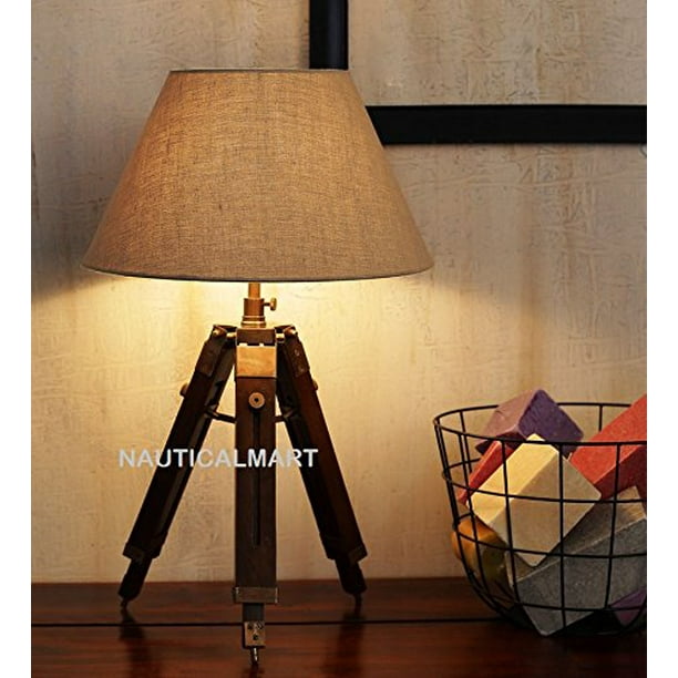 Nauticalmart Classic Designer Wood And Beige Color Tripod Table Lamp Walmart Com Walmart Com