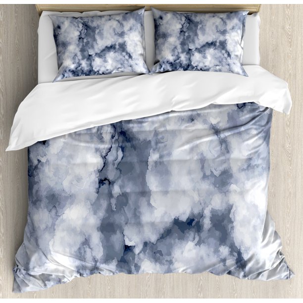 Marble Duvet Cover Set Cloudy Stylized Artistic Marble Pattern With Foggy Effects Abstract Display Decorative Bedding Set With Pillow Shams Cadet Blue Dust By Ambesonne Walmart Com Walmart Com