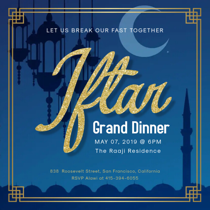 Black Regal Ramadan Iftar Instagram Invitation Template Postermywall