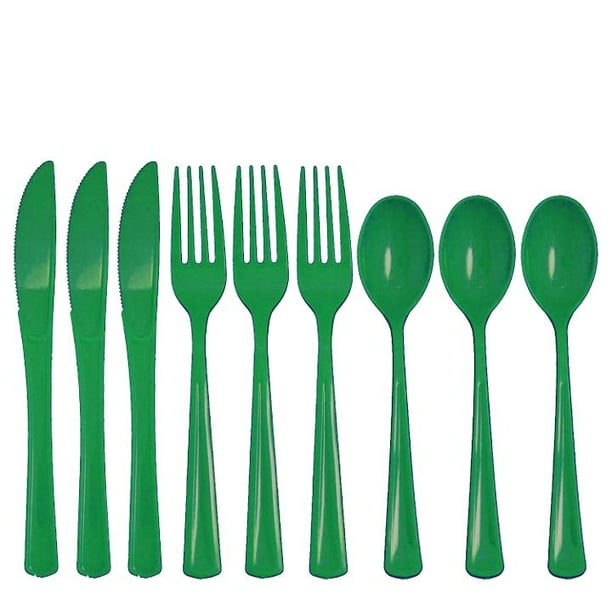 Exquisite Disposable Plastic Cutlery Combo 24 Piece Party Pack Includes 8 Forks 8 Spoons And 8 Knives Heavyweight Plastic Silverware Emerald Green Walmart Com Walmart Com