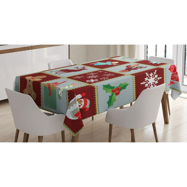 Angel Tablecloth Christmas Tree Reindeers Noel Santa Presents Snowman Pine Tree Traditional Rectangular Table Cover For Dining Room Kitchen 52 X 70 Inches Burgundy Blue Grey By Ambesonne Walmart Com Walmart Com