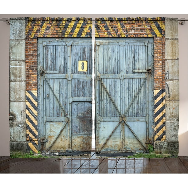 Industrial Decor Curtains 2 Panels Set Old Aged Wooden Factory Gate With Warning Signs Industrial Change For Modern Techno Theme Living Room Bedroom Accessories By Ambesonne Walmart Com Walmart Com
