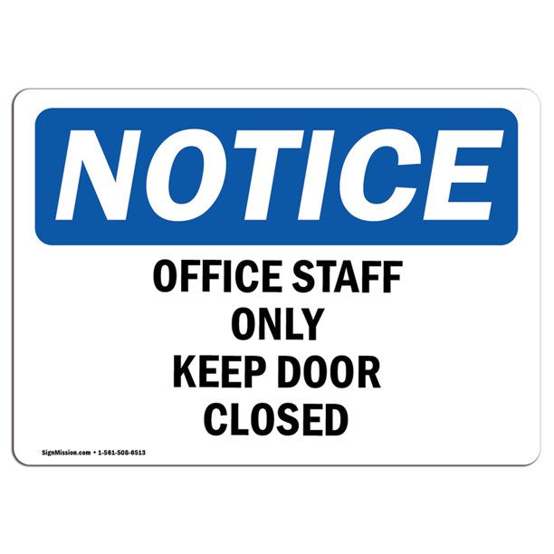 Osha Notice Office Staff Only Keep Door Closed Sign Heavy Duty Walmart Com Walmart Com