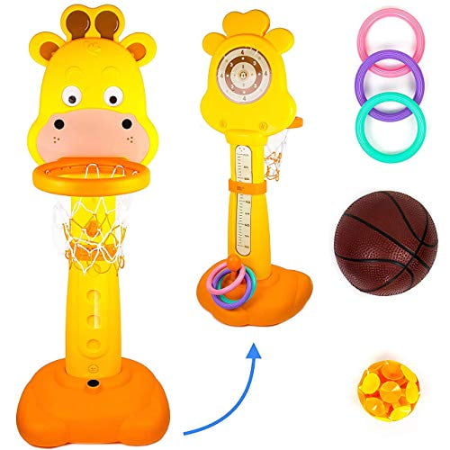 Amazon Com Basketball Hoop Set 3 In 1 Sports Activity Center Grow To Pro Adjustable Easy Score Basketball Hoop Football Soccer Goal Ring Toss Cute Giraffe Best Gift For Baby Infant Toddler Yellow Toys