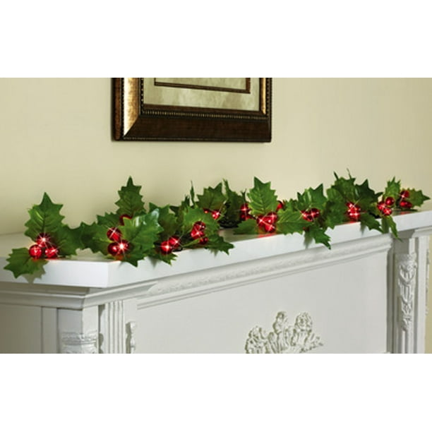 Holly Berry String Lights Garland With Timer Walmart Com Walmart Com