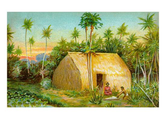 Hawaii View Of Grass Hut And Taro Patch Photograph Print Traditional Prints And Posters By Lantern Press