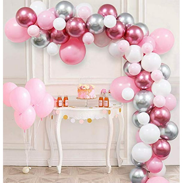 85 Pcs Diy Balloons Arch Garland Kit With Latex Pink Shiny Metallic Silver Red Balloons Latex Balloons Shiny Balloons Garland Party Decorations For Baby Shower 1st Birthday Party Wedding Anniversary Walmart Com