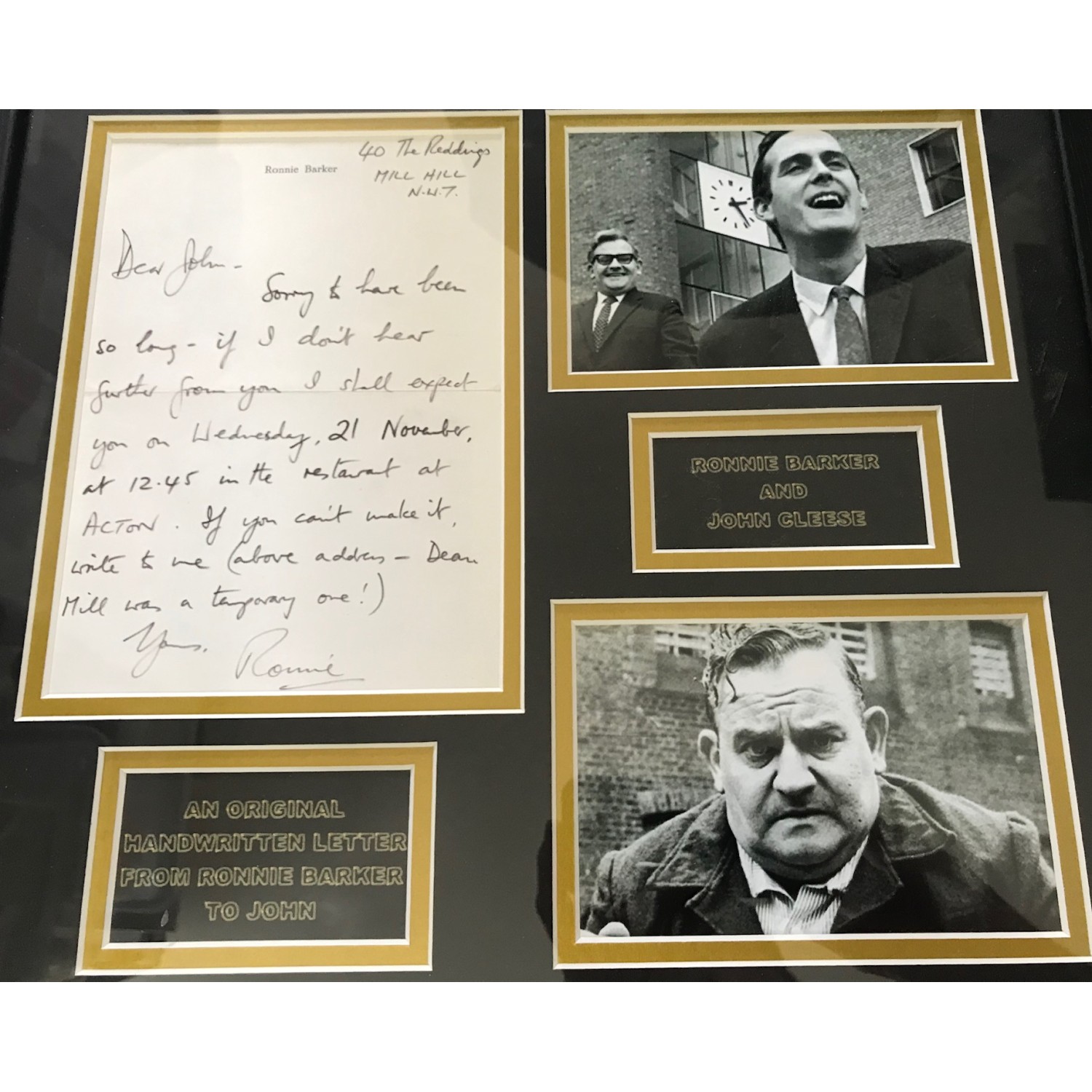 Ronnie Barker Signed Rare Handwritten Letter From Ronnie Barker To John Cleese Framed Display 266