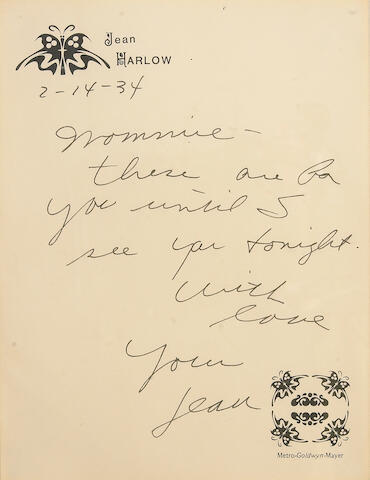 Bonhams A Jean Harlow Handwritten Letter To Her Mother 1934