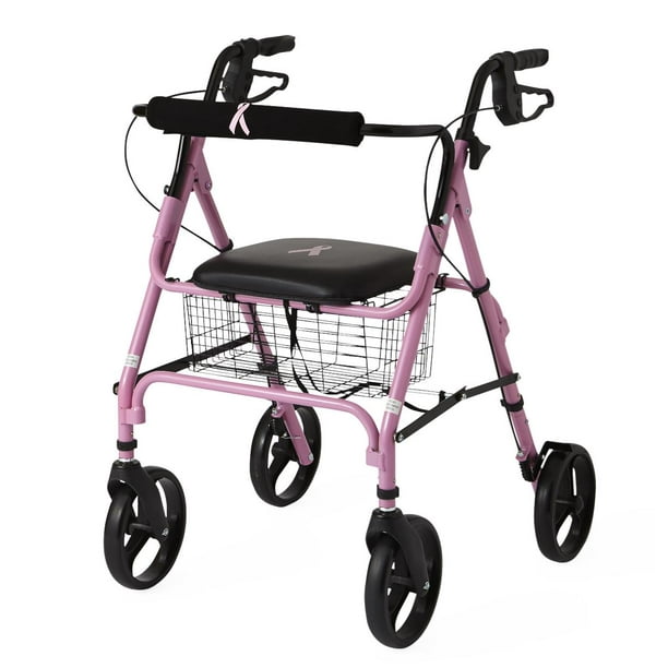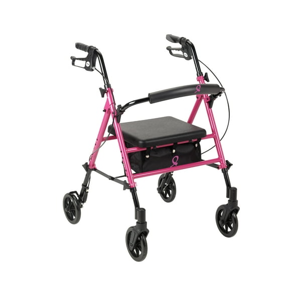 Medline Rollator Walker In Pink Breast Cancer Awareness Pink Ribbon Walmart Com Walmart Com