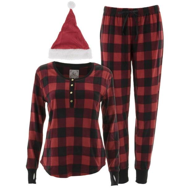 Pj Couture Pj Couture Women S Red Plaid Pajamas And Santa Hat Walmart Com Walmart Com