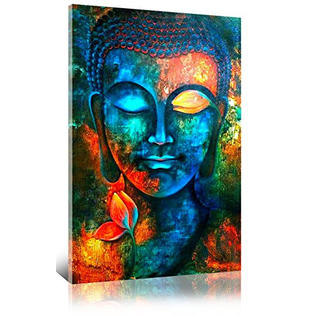 Sunfrower Blue Buddha Wall Decor Colorful Abstract Buddha Head Wall Art Zen Posters Modern
