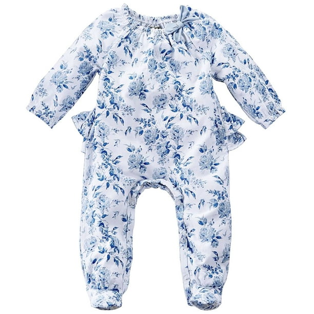 In Fashion Kids Designer Boutique Baby Girls Blue Toile Floral Sleeper 0 3 Months Walmart Com Walmart Com