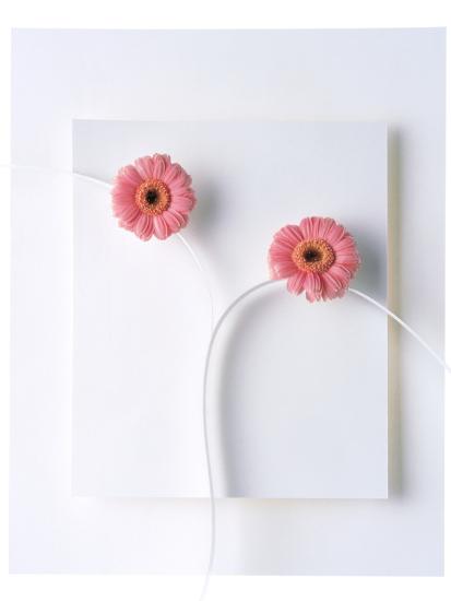 Two Vivid Pink Gerbera Daisy Blooms On White Stems With White Background Photographic Print Art Com