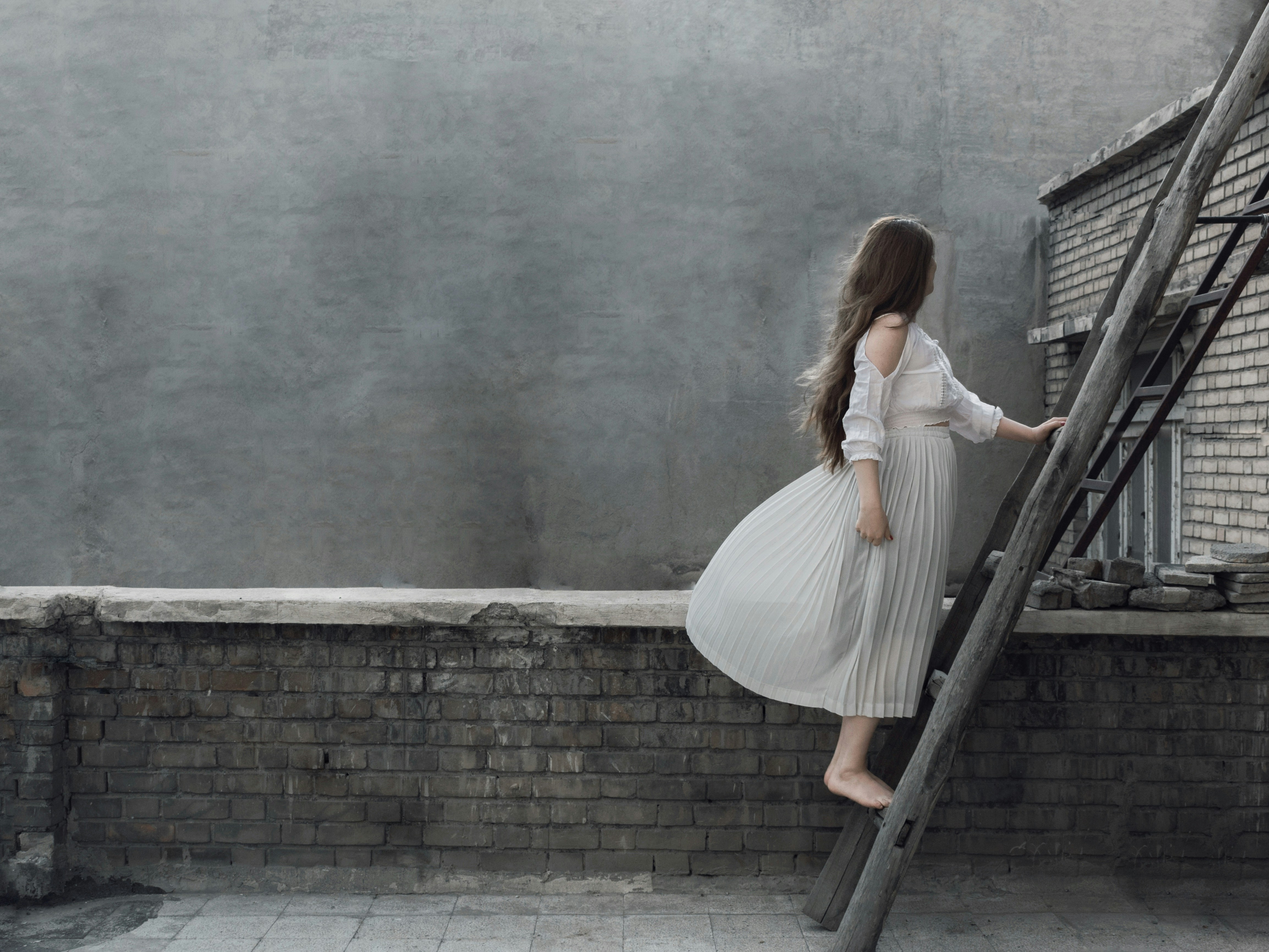 Woman Standing On Step Ladder Photo Free Apparel Image On Unsplash
