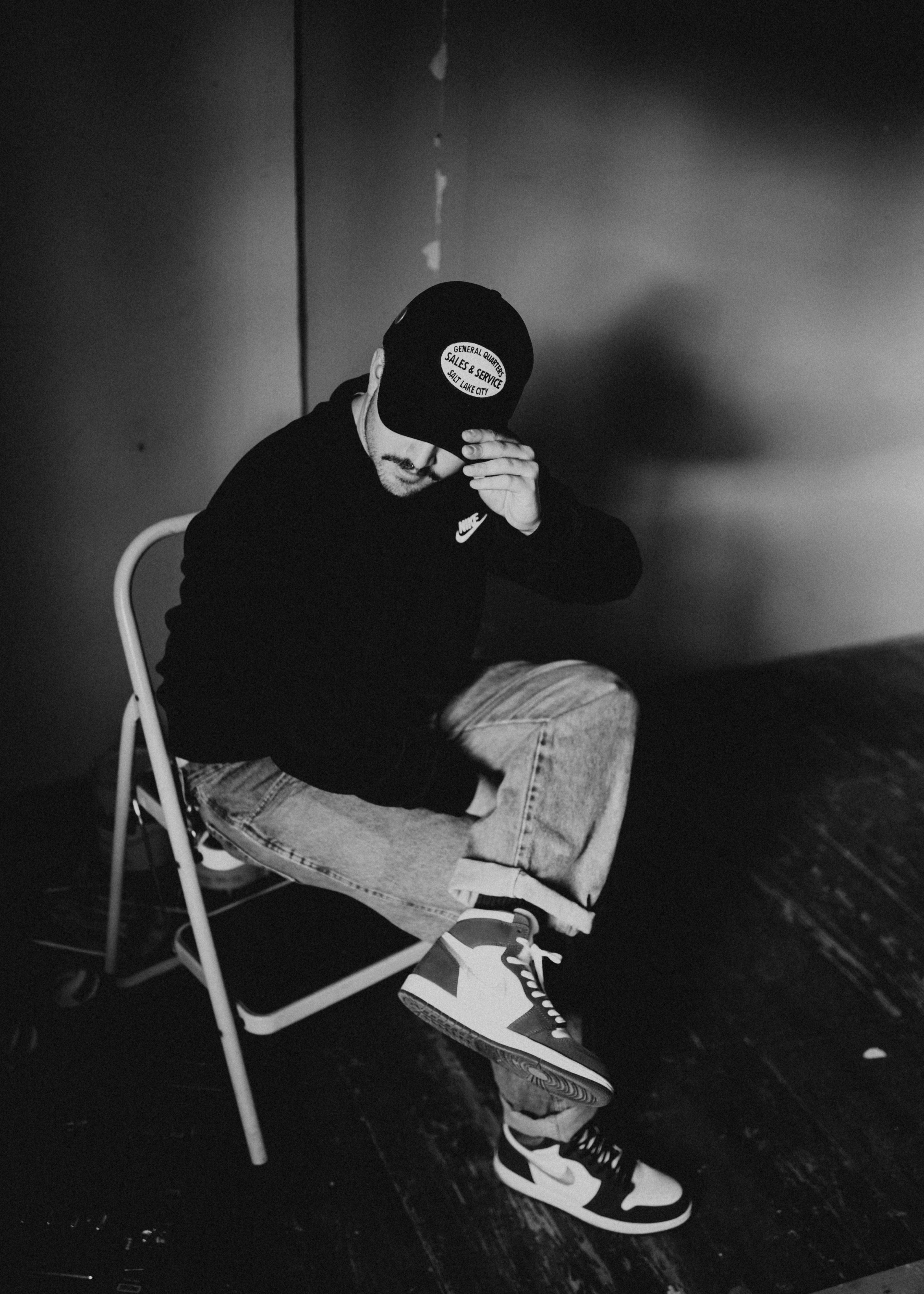 Man Sitting On Step Ladder Free Stock Photo