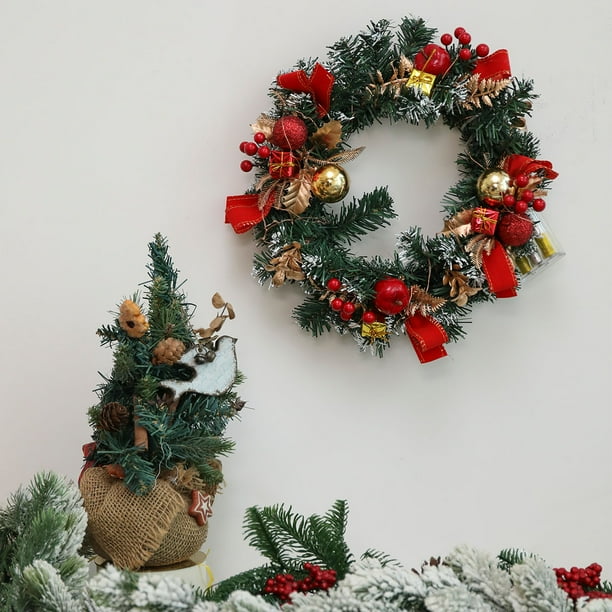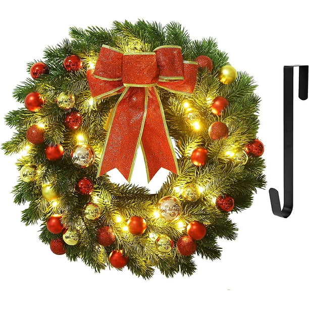 16 Inch Pre Lit Christmas Wreath With Metal Hanger Large Red Bow And Colored Balls Battery Operated With Warm White 40 Leds Lights Front Door Spruce Lighted Wreath X Max Decorations Walmart Com