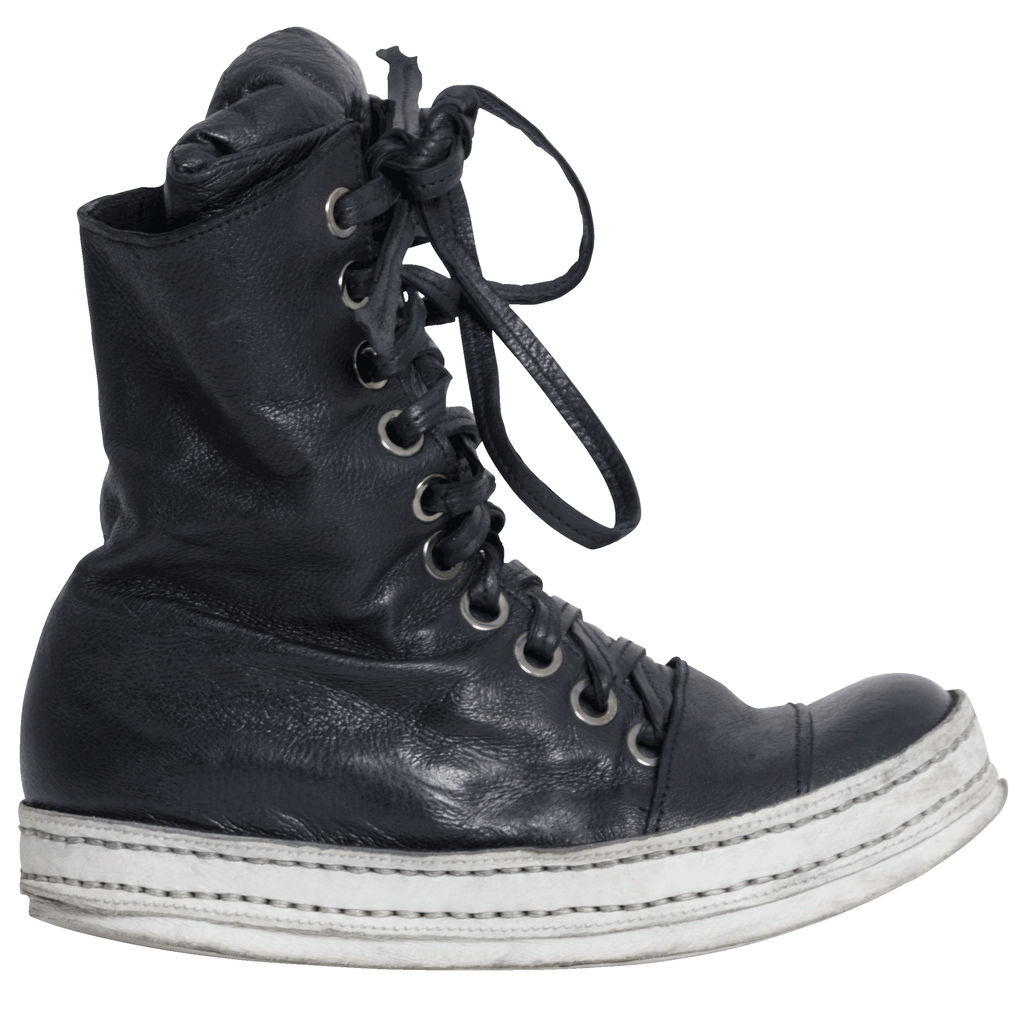 James Kearns 10 Hole Washed Black Leather Shoes With White Sole By Bradley Soileau Basic Space Own The Future