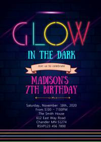 Kids Glow In The Dark Neon Party Invitations Glow Party Neon Party