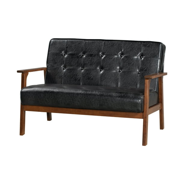 Modern Loveseat Sofa For Living Room Upholstered 2 Seat Couch With Solid Wood Legs Pu Leather Retro Sofa With Button Design Recreational Chair For Reception Dorm Small Space 400lbs Black S5714 Walmart Com