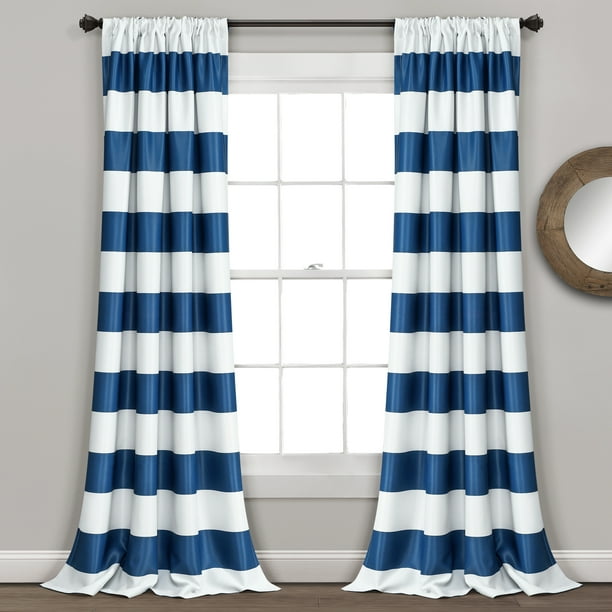 Lush Decor Stripe Blackout Window Curtain Navy Set 52x95 Walmart Com Walmart Com