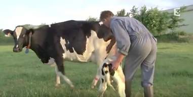 Michel Is Playing With Baby Cow Pics
