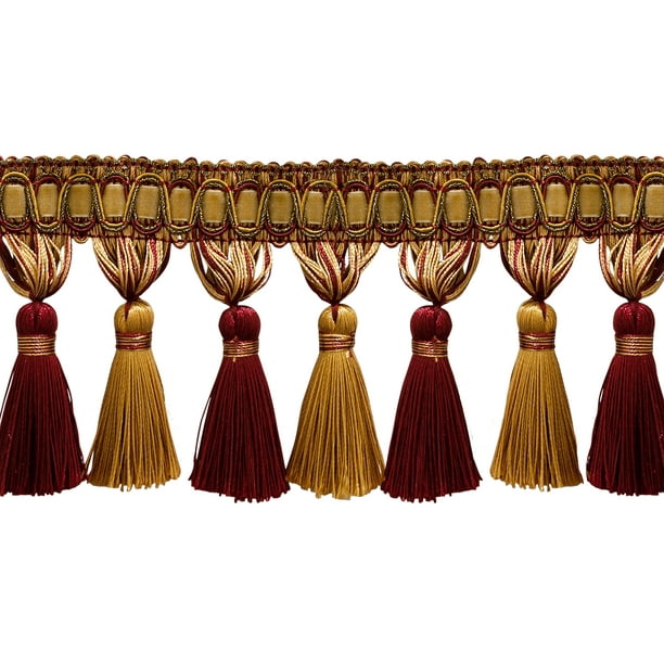 Elegant 3 3 4 Inch Long Wine Deep Red Gold Tassel Fringe Style Tfh4 Color Carmine Gold 1253 Sold By The Yard Walmart Com Walmart Com