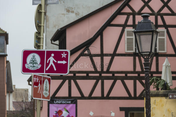 Road Signs And Street Lamp Frame The Typical Medieval Old Town Petite Venise Colmar Haut Rhin