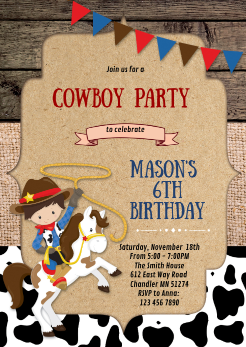 Cowboy Birthday Party Invitation Template Postermywall