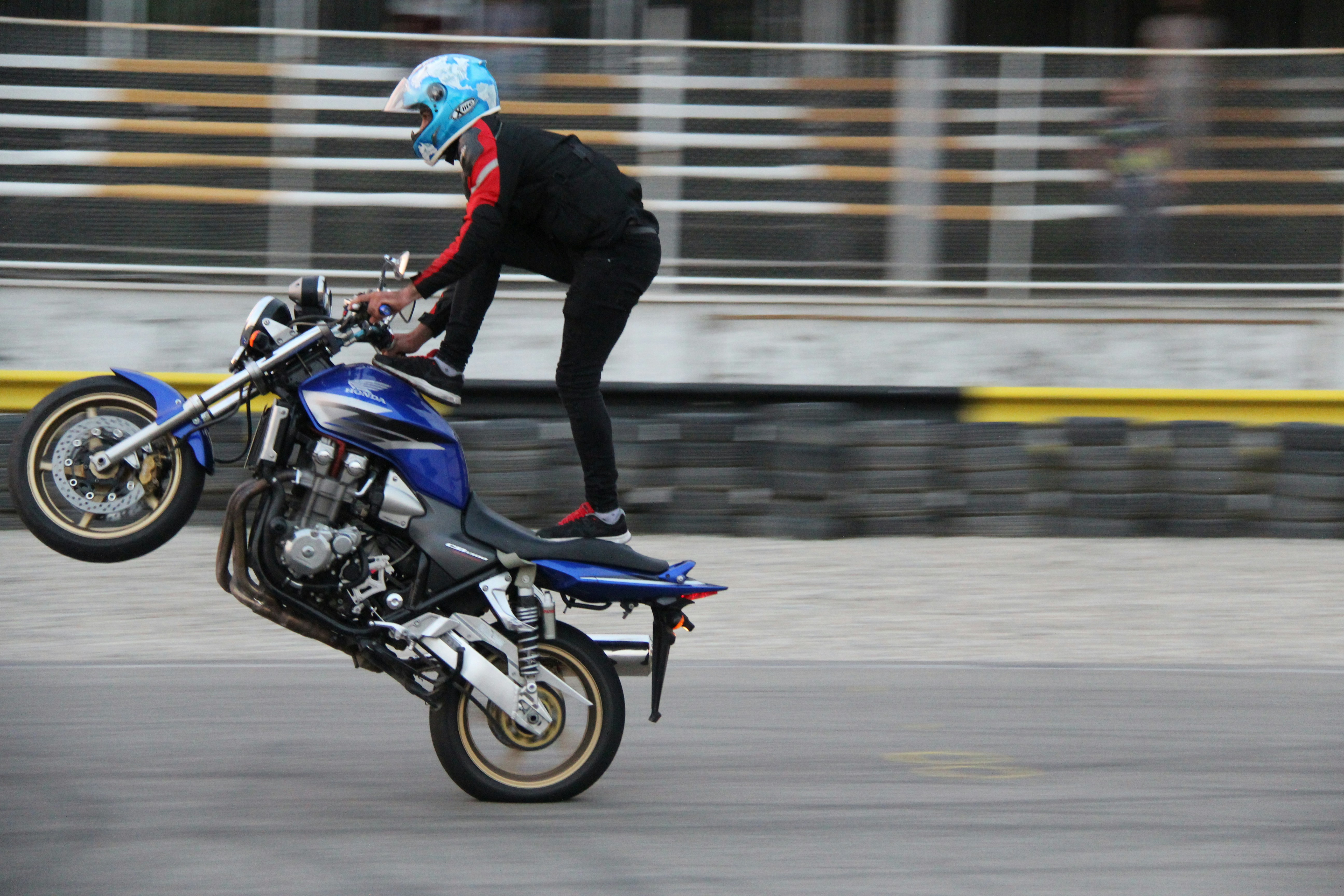 Man In Black Jacket Riding Blue Sports Bike Photo Free Apparel Image On Unsplash