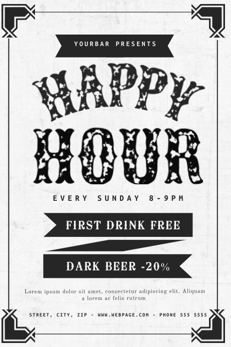 Black And White Happy Hours Flyer Banner Or Template Design With Frame And Beer Glass Stock Vector Illustration Of Background Classic
