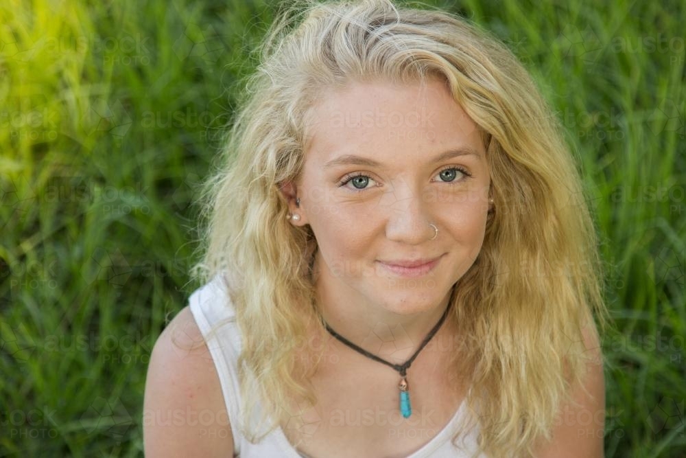 Portrait Of Smiling Blonde Teenage Girl Photo Lightstock