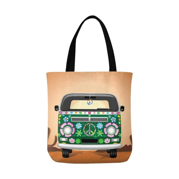 Ashleigh Hippie Groovy Van With Peace Sign Traveling On The Desert Canvas Tote Bags Reusable Shopping Bags Grocery Bags Washable Bags For Women Men Kids Walmart Com Walmart Com