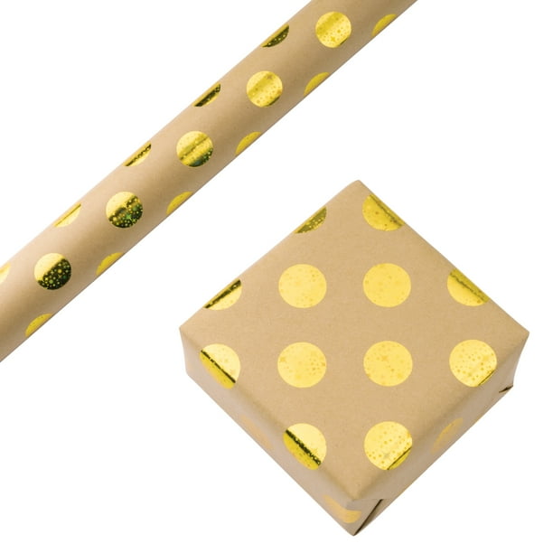 Ruspepa Kraft Wrapping Paper Roll Foil Gold Star Shiny Dot Wrapping Paper 1 Roll 30 Inch X 16 Feet Walmart Com Walmart Com