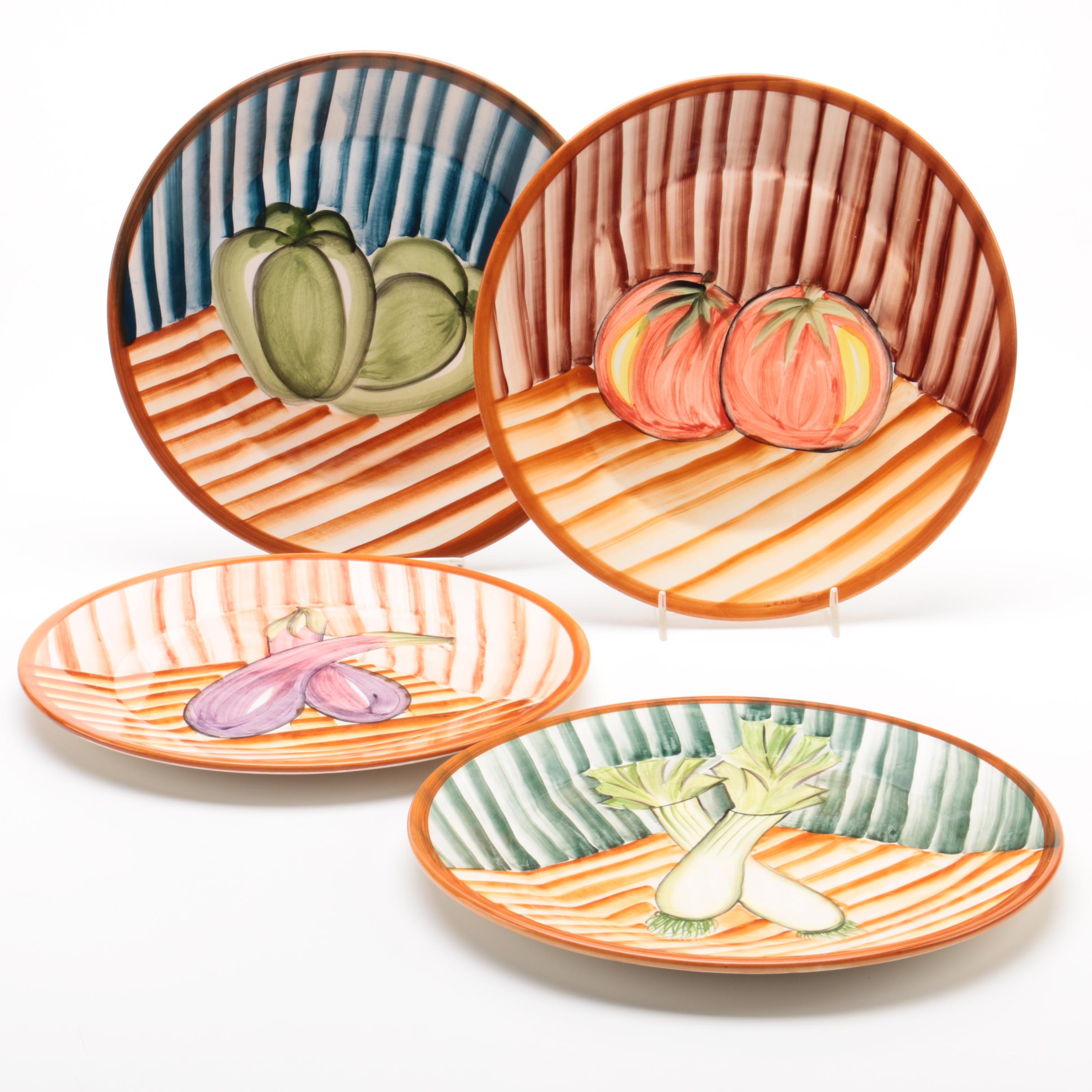 Hand Painted Portuguese Ceramic Plates With Vegetables Ebth