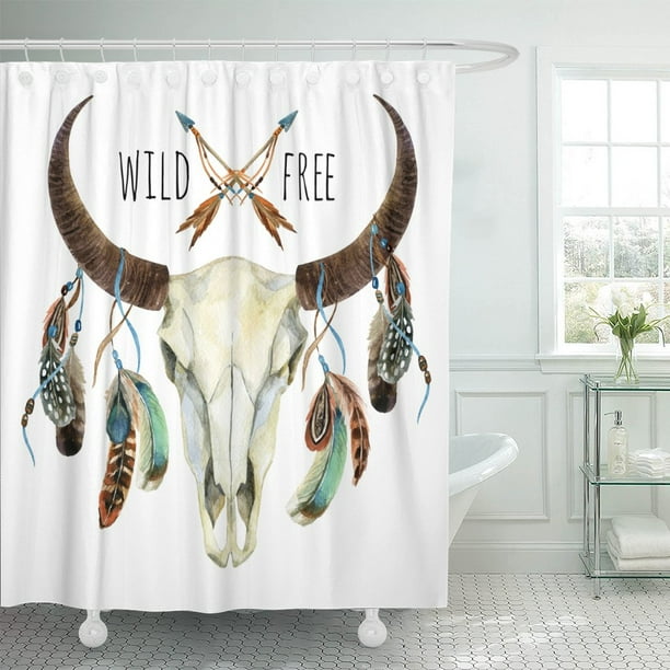 Pknmt Cow Skull Animal Feathers Buffalo Wild And Free Watercolor Shower Curtain 60x72 Inches Walmart Com Walmart Com