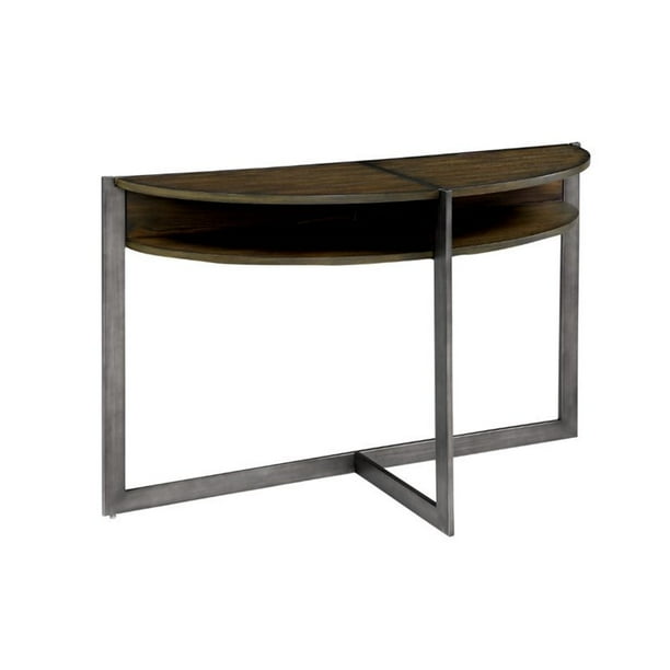 Furniture Of America Dana Open Shelf Half Moon Sofa Table In Dark Oak Nebraska Furniture Mart