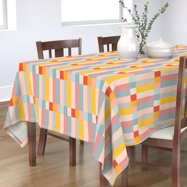 Tablecloth Retro Geometric Pastel Colored Squares Vintage Siw Cotton Sateen Walmart Com Walmart Com