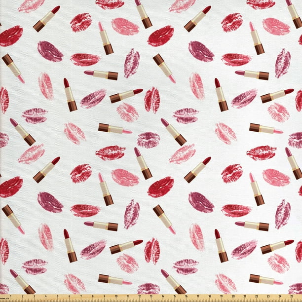 Cosmetics Fabric By The Yard Beauty Theme Pink And Burgundy Lipstick And Kiss Pattern Makeup Concept Decorative Fabric For Upholstery And Home Accents By Ambesonne Walmart Com Walmart Com