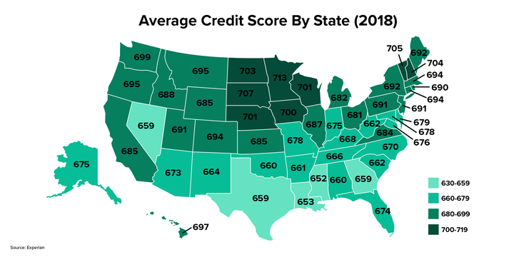 This Map Shows The Average Credit Score In Every State Huffpost Life