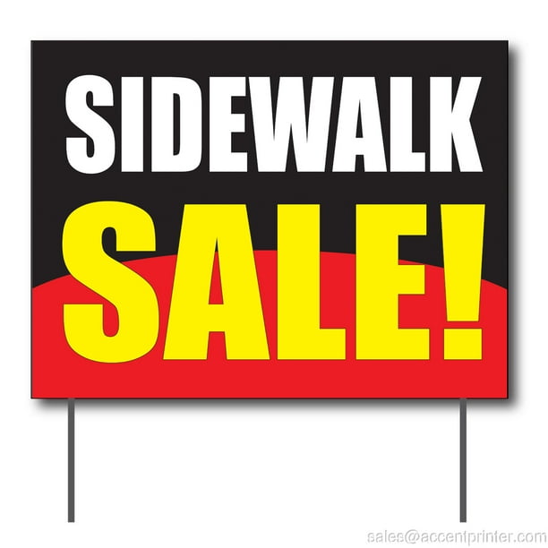 Sidewalk sale signs. Create custom signs using a variety of rigid and flexible materials Add print decor for promoting any personal or business event!. You may use Aframes and folding "sandwich board" signs on the sidewalk next to your business if The sidewalk measures at least 12 feet wide from the building to the curb The sign does not extend beyond three feet from the building, and is not immediately next to the curb or in the center of a sidewalk The sign is under five feet tall. Portable roadside signs are available in lighted and nonlighted versions with or without arrows Most of our portable signs are available on a trailer Some of our portable signage is UPS shippable Reliable sign company shipping products online since 01 We also have plastic portable sign letters in stock and ready to ship.