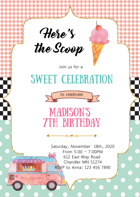 We offer a wide variety of template designs, including Passport Invitation Card Template, Baby Shower Invitation Postcard Template, Bridal Shower Invitation Postcard Template, Ice Cream Invitation, and others They are all readymade and can be used in all versions of Microsoft. The image used as a backdrop is still refreshing but still relevant to the business. Ice Cream Party View more Summer printables Thanksgiving Food s &.