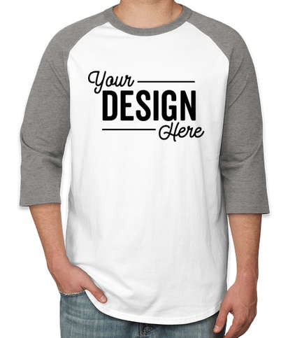 Blank T Shirt Raglan 3 4 Sleeves Front View With Heather Grey Color Isolated On White Background Ready For Design Mockup Stock Photo Image Of Pocket Shirt