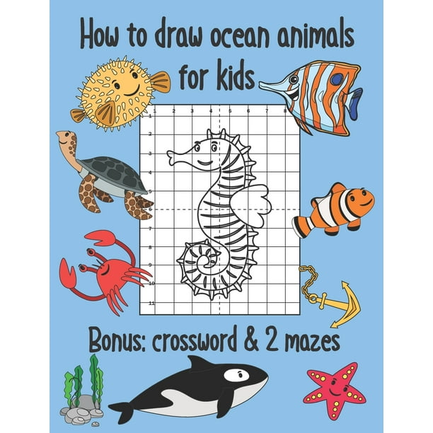 How To Draw Ocean Animals For Kids Bonus Crossword And 2 Mazes Sea Creatures Coloring And Grid Drawing Book Paperback Walmart Com Walmart Com