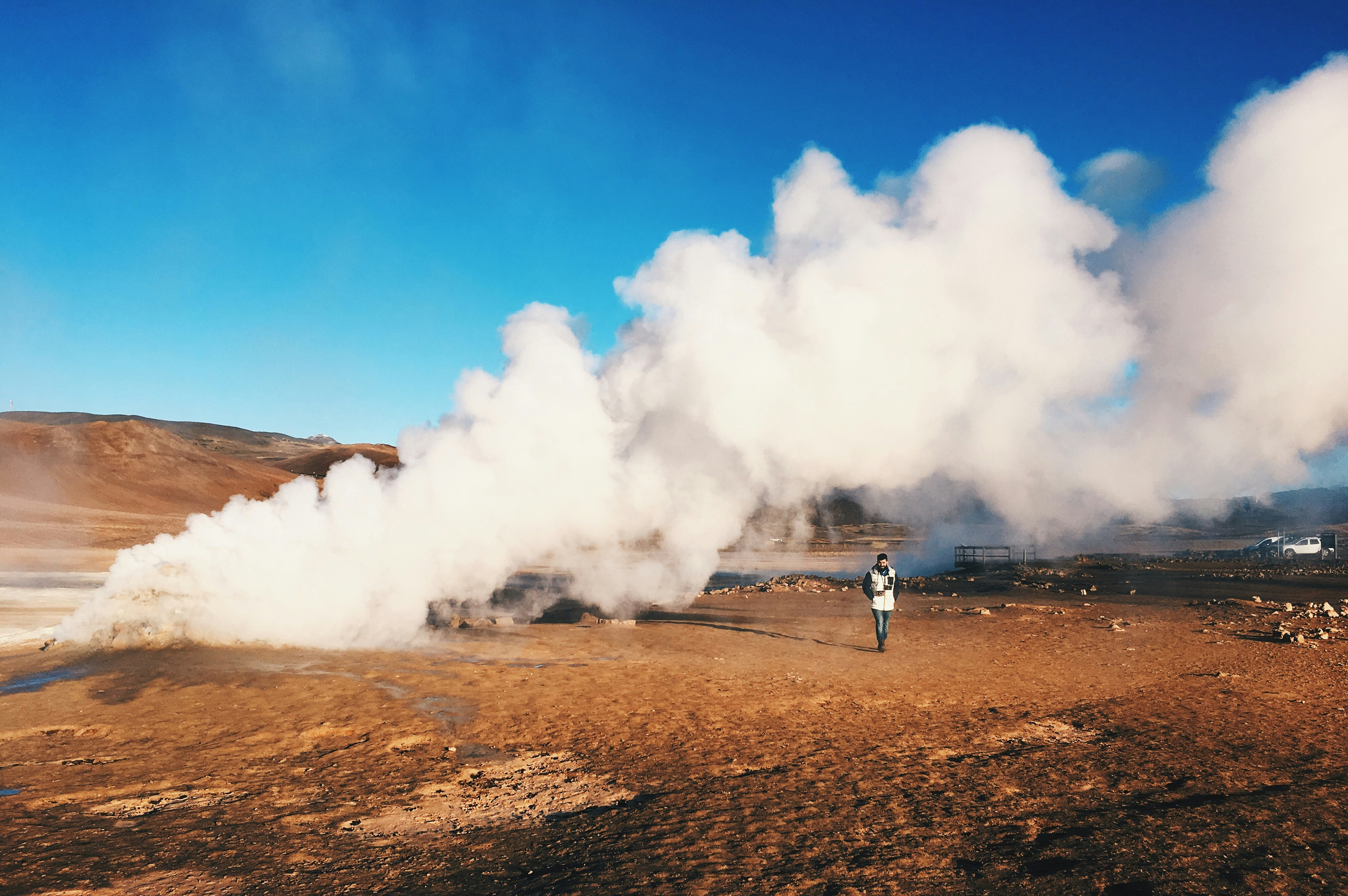 Person Stands Near Smoke Under Clear Sky Photo Free Nature Image On Unsplash