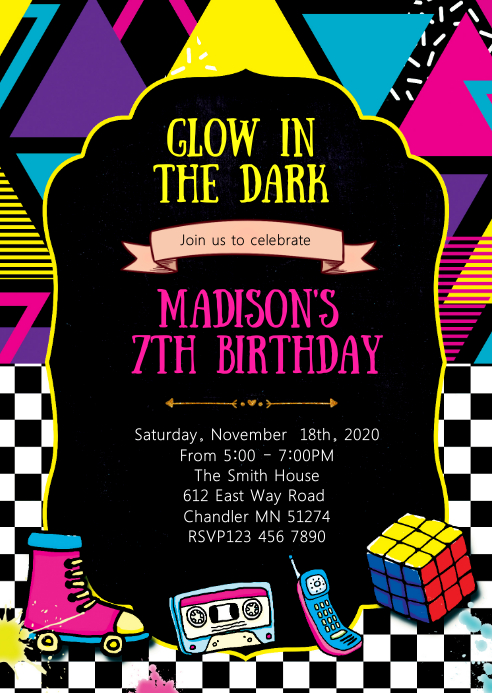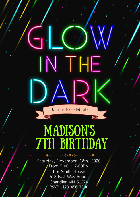 Glow Birthday Party Invitation Template Postermywall