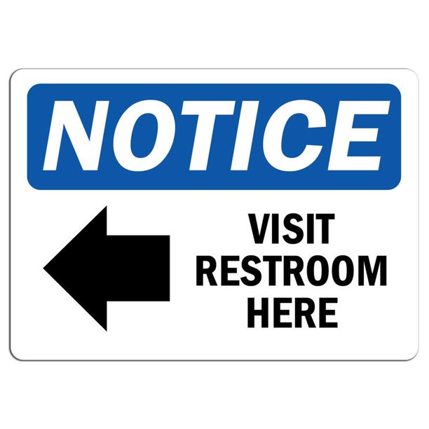 Notice Visit Restroom Here Left Arrow Sign With Symbol Safety Notice Signs For Work Place Safety 10x7 Aluminum Sign Easy Installation Lifetime Warranty Walmart Com Walmart Com